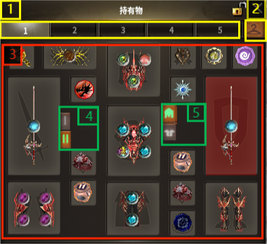 - 武器/防具/套裝的穿戴與否,可通過各槽位的【背景顔色】與【數字或圖標顔色】快速判斷。