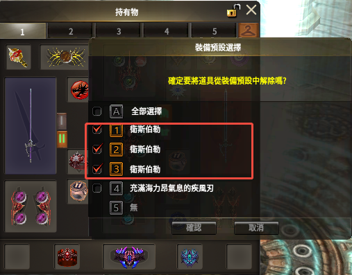 ※ 如勾選的【裝備預設頁】中,已有其他裝備穿戴時,原有的裝備將被解除穿戴,替換為新的裝備。