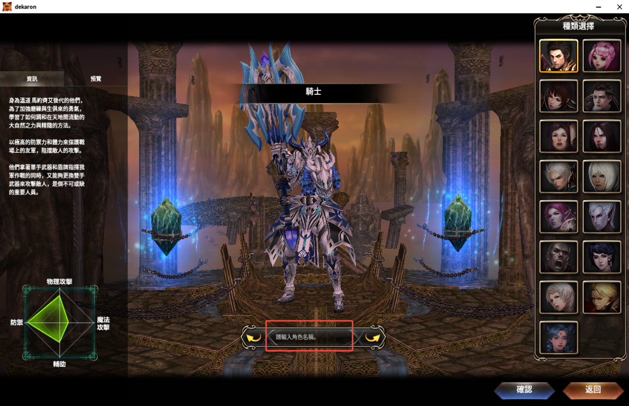 - 每種職業擁有各自的特色,可參考介面左側4維圖選擇職業。