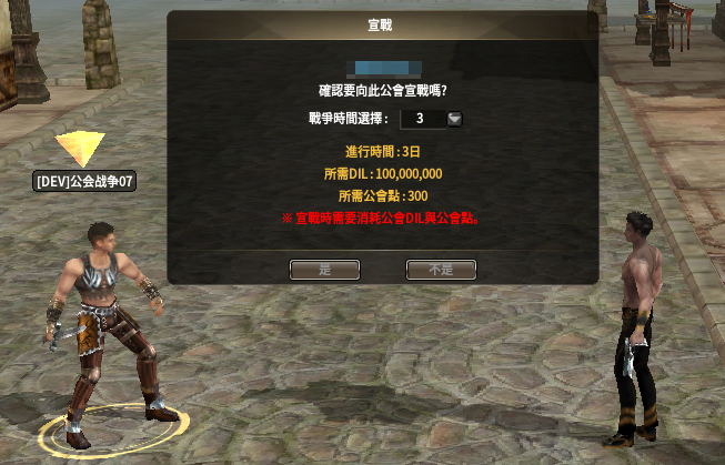 1.為了進行公會宣戰操作,需要消耗一定公會DIL和公會點。