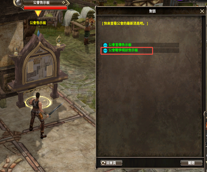 1. 可通過 [公會(G) -> 戰爭現狀]中,查看公會戰爭相關狀態與記錄。