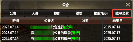 - 接受宣戰:即可開始對應天數的公會戰爭。