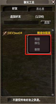 - 也可滑鼠右鍵點擊聊天窗中的角色名,向目標發起“好友申請”。