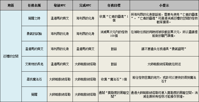 (1)在角色等級達到131級後,可前往巡禮的空間“NPC:溫道馬約齊艾”進行1次覺醒的試煉。