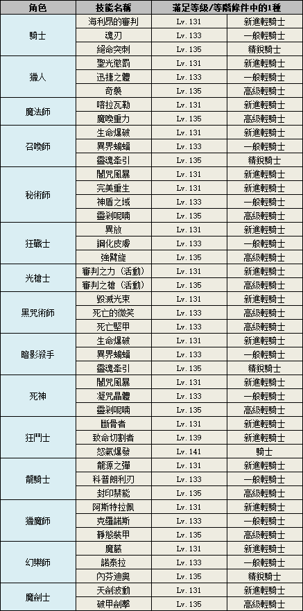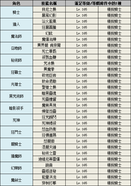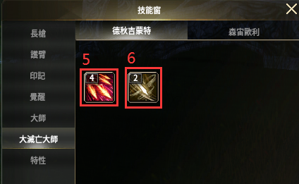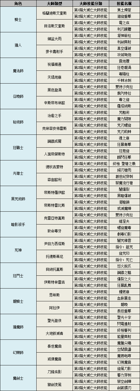 - 根據大師中所選擇(二選一)的大師職業,將獲得對應大師職業的技能。
