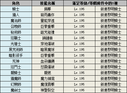 ※ 進行大師時,將會初始化所有基本技能。同時部分原有技能等級將擴展、獲得1轉攻擊技能與移動技能。
