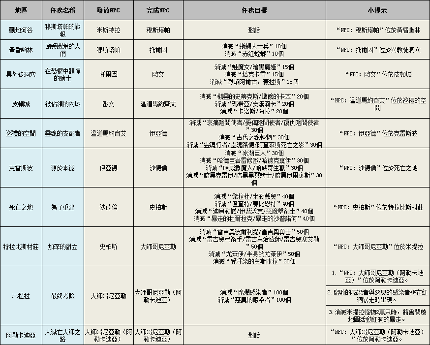 (1)當角色完成大師並且等級達到200級後,即可進行大滅亡大師的試煉。完成大滅亡大師時,將會習得強大的攻擊技能。為了獲得更加強大的力量,請前往戰地河谷尋找“NPC:米斯特拉”吧。