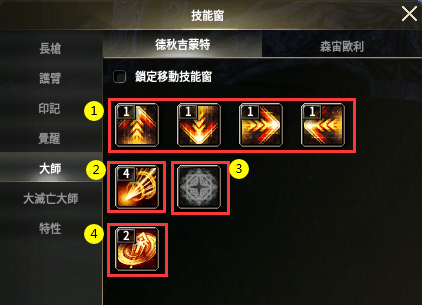 ④第3階大師技能:基礎等級為1級,最高可強化至10級。