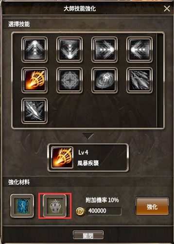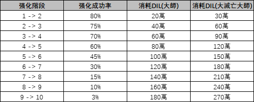2.大師技能強化為概率成功,且強化過程中需要消耗DIL與對應技能書道具。