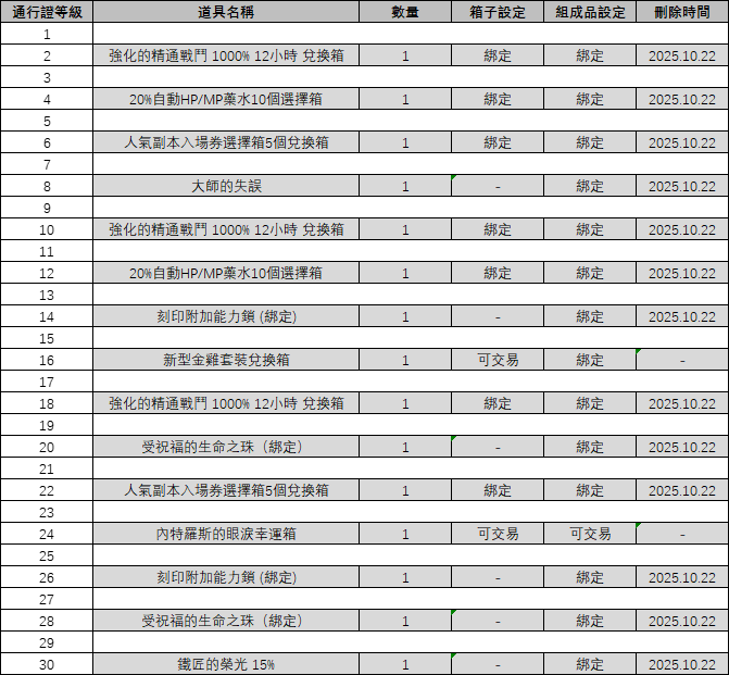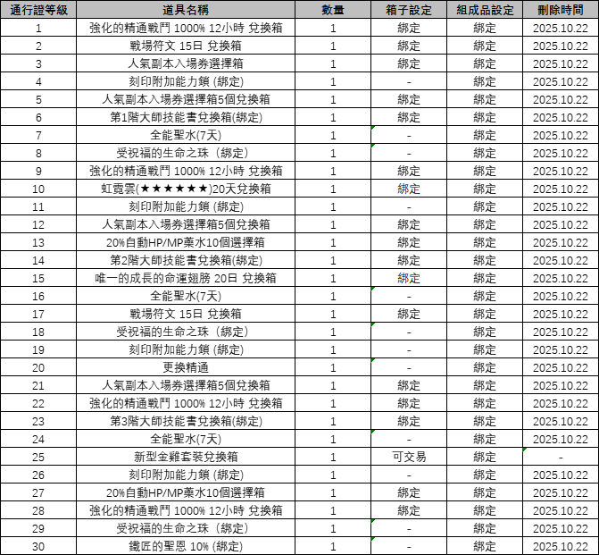 - 角色擁有<全能聖水(貴賓)>效果時,不僅可以領取[普通通行證獎勵],還將也鎖對應等級的[高級通行證獎勵]。